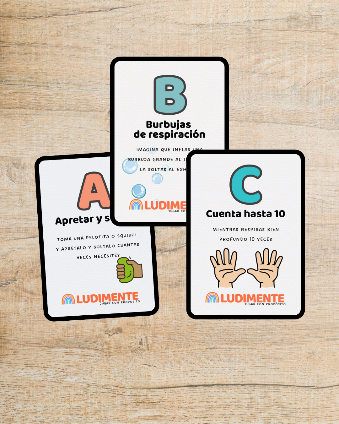 Cada tarjeta presenta una estrategia basada en una letra del abecedario, facilitando su memorización y aplicación en distintos momentos del día. Ideal para terapeutas, docentes y familias que buscan promover la calma y el bienestar en la infancia.