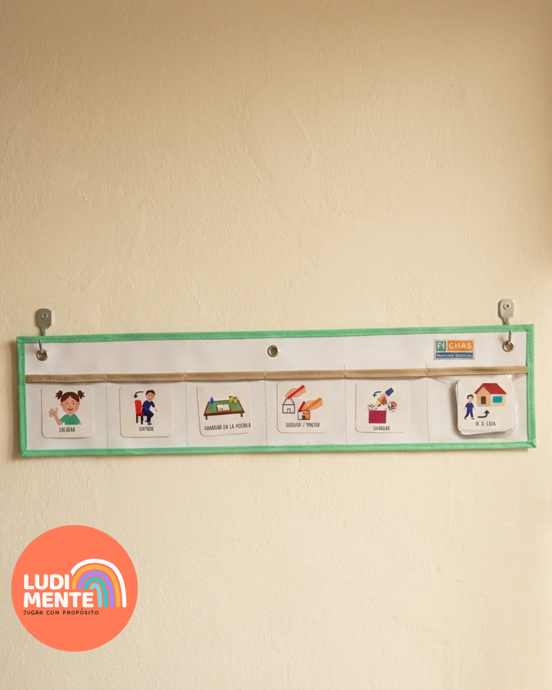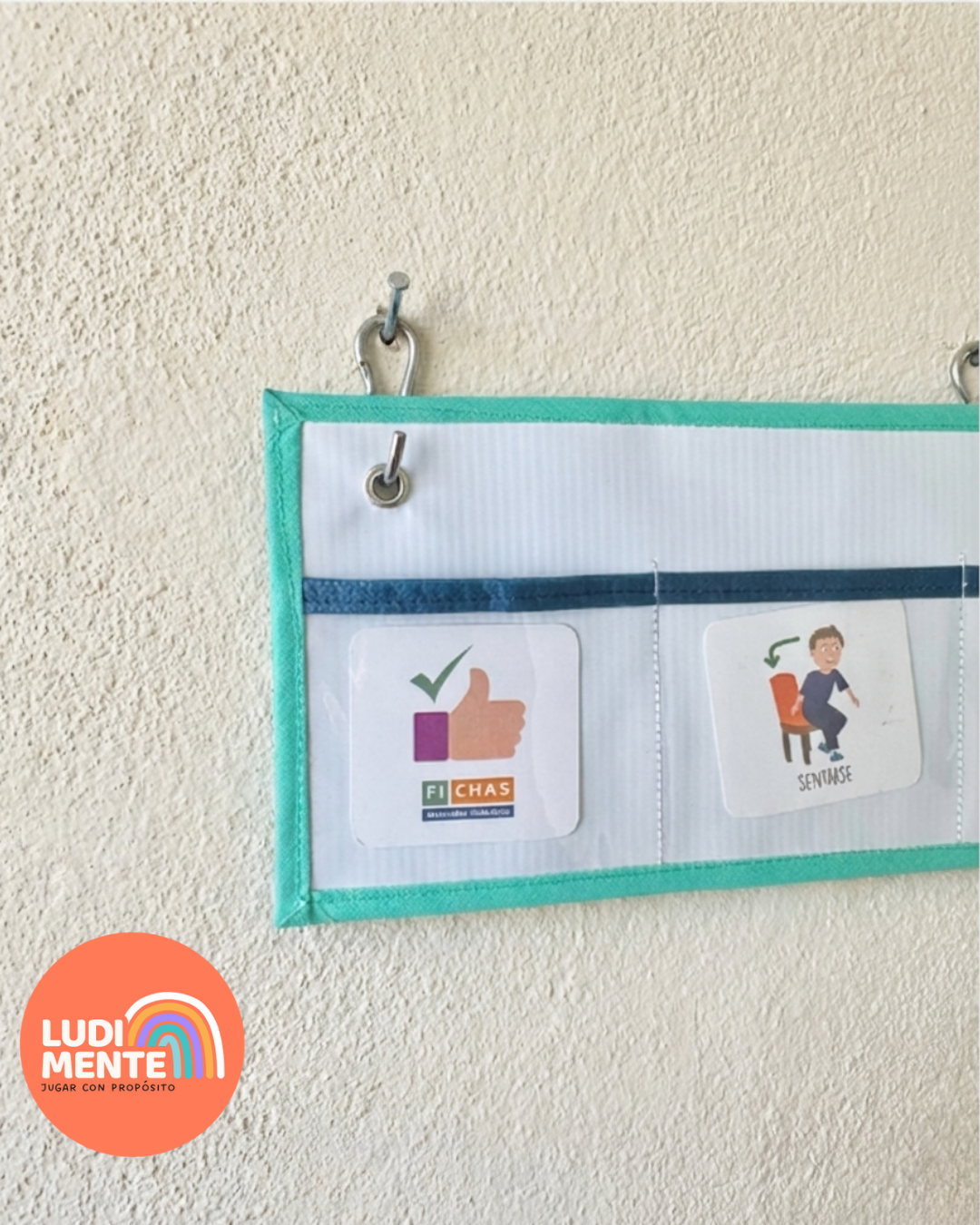 📅 Diseño resistente y práctico: Hecho con lona vinílica blanca, ¡súper duradero y fácil de limpiar! Con 6 bolsillos en nylon cristal, decorados con detalles en bies, podrás organizar todas las actividades terapéuticas de forma clara y accesible. Y uno de los bolsillos es más grande, ideal para guardar las tarjetas no utilizadas. 🗂️
