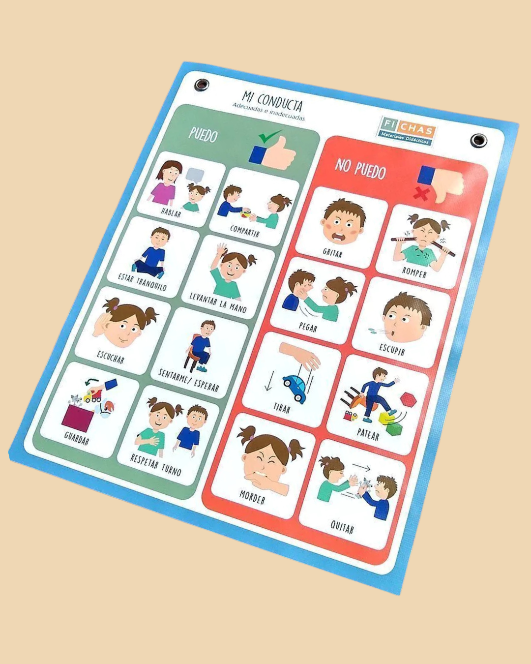 - 🖼️ Diseño atractivo y educativo: Contiene imágenes visuales de conductas positivas y negativas, ayudando a los niños a entender qué se espera de ellos en diferentes situaciones.