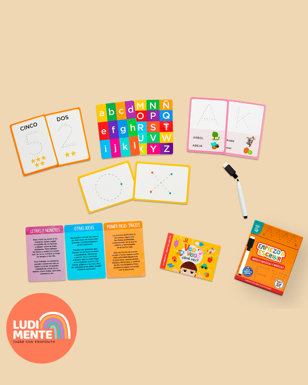 Un set de 50 cartas didácticas con trazos, letras, números y un libro de actividades pensado para acompañar los primeros pasos en la escritura.